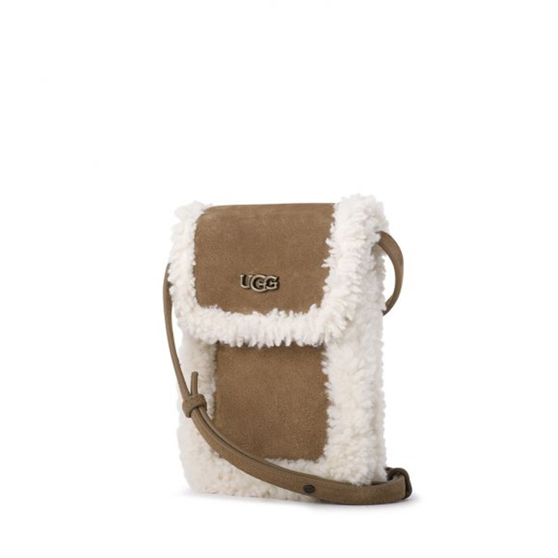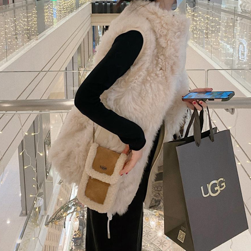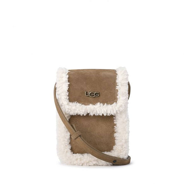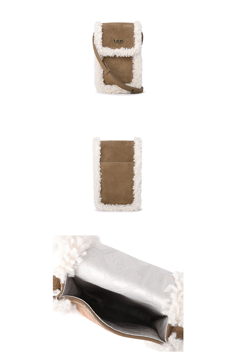 UGG 秋冬新款毛绒斜挎迷你零钱手机包 栗色