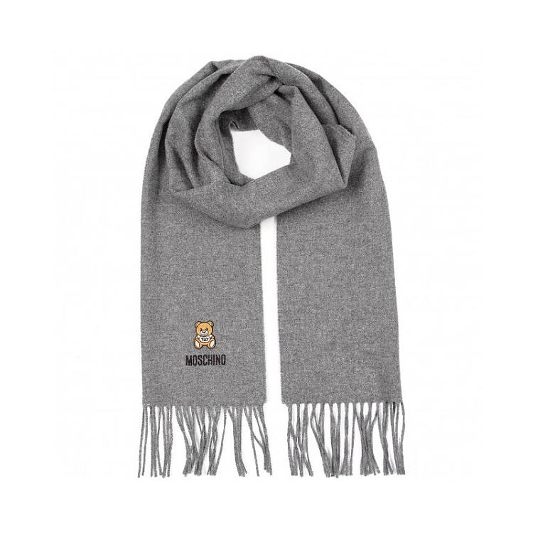 【女款】 MOSCHINO中性灰色羊毛小熊刺绣流苏围巾M5293-50124-014