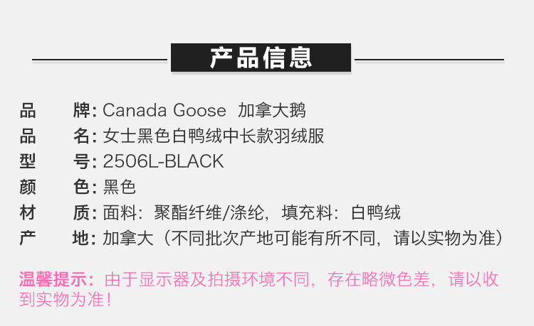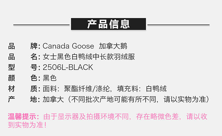 【女款】 CanadaGoose加拿大鹅女士中款郊狼毛领抗寒防水羽绒服黑色2506L-BLACK