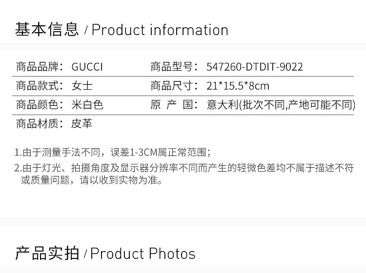 【女款】 GUCCI米白色女士手提包547260-DTDIT-9022