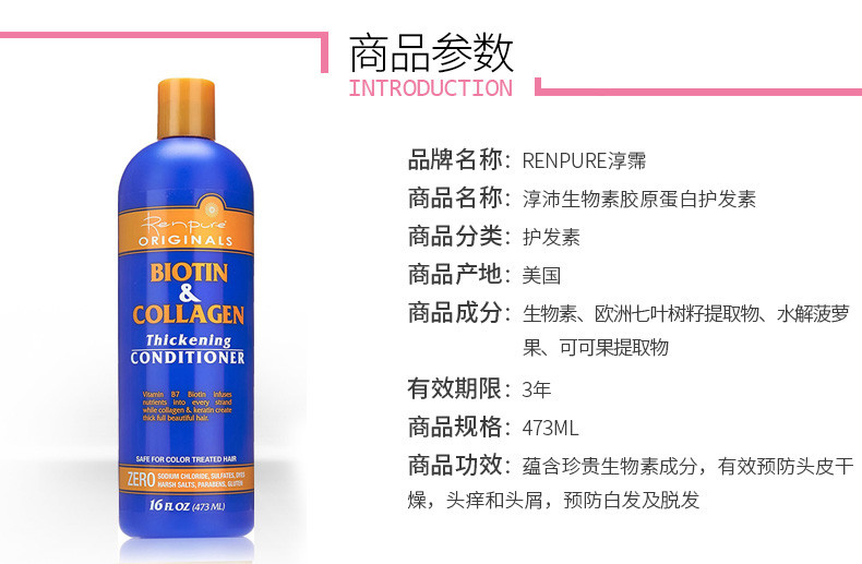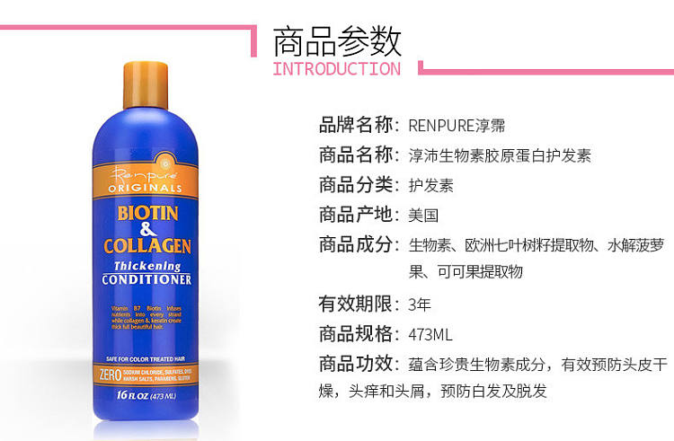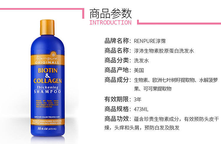 商品名称:Renpure Originals Biotin 淳沛生物素胶原蛋白洗发水 473ml+护发素 473ml