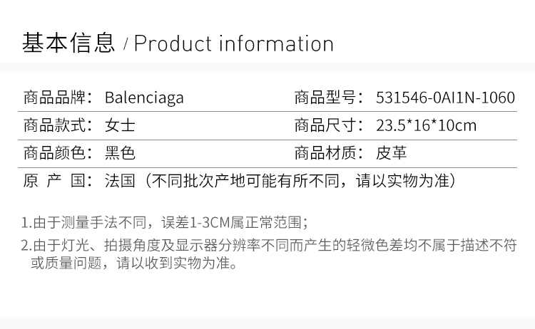 【女款】 Balenciaga巴黎世家女士黑色手提包531546-0AI1N-1060