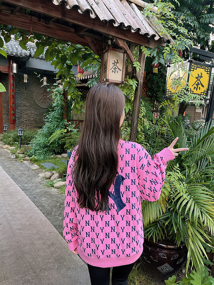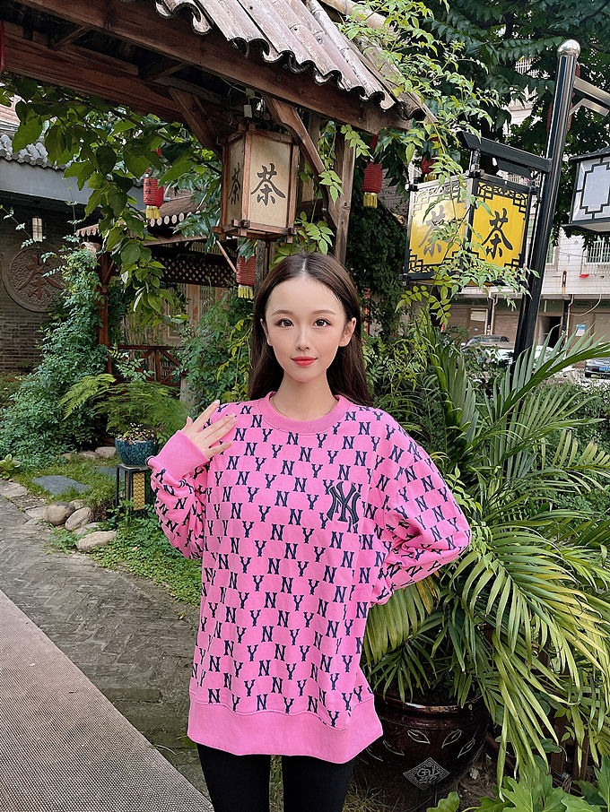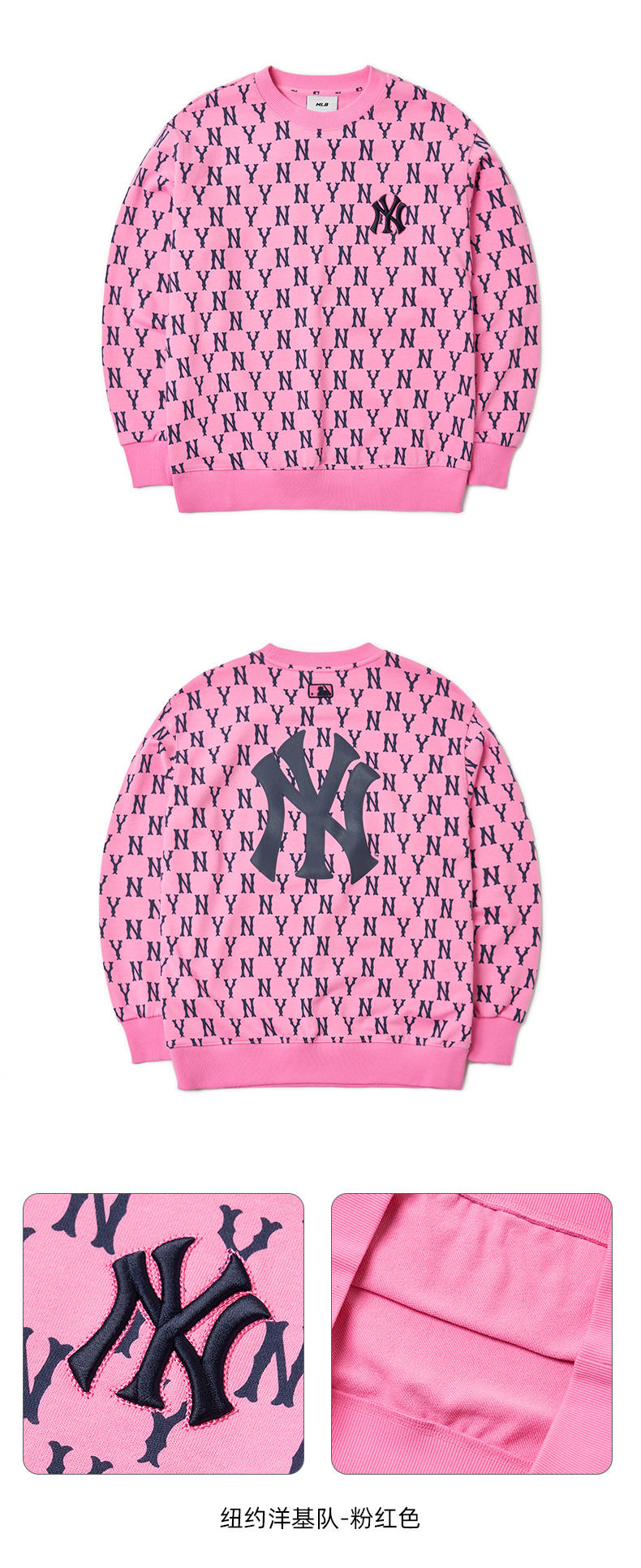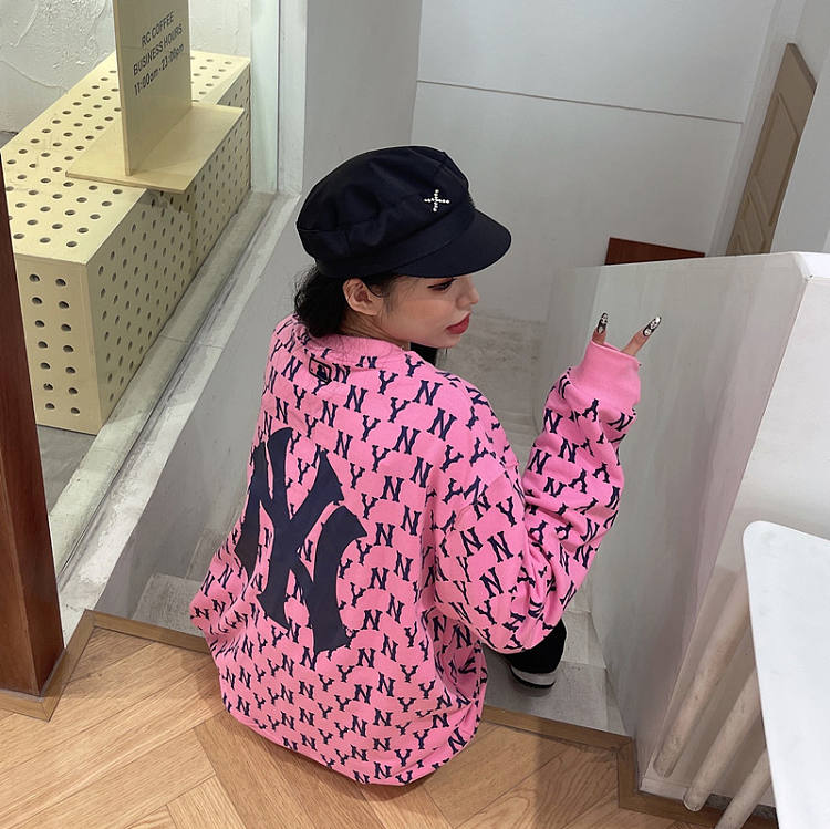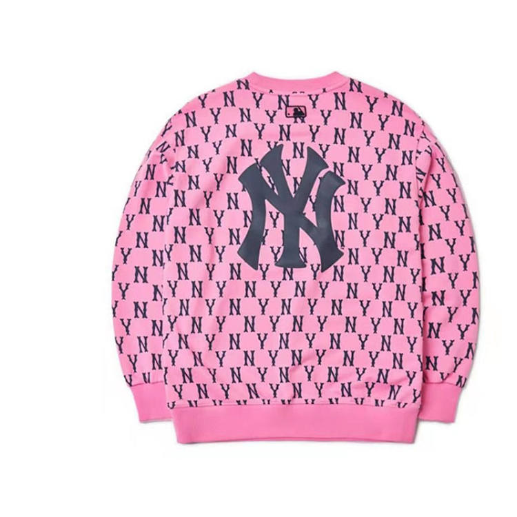 【男女通款】 韩国MLB 纽约洋基队满印字母套头卫衣 男女同款 粉色