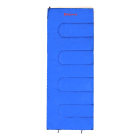 可左右拼款信封棉睡袋/重量1kg/填充物200g/m2化纤棉(100%聚酯纤维)/面料防水压光处理/柔软舒适/温标:舒适温度17℃;较舒适温度13℃;极端温度4℃/有收纳袋/压缩后易于携带