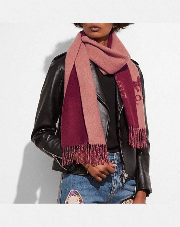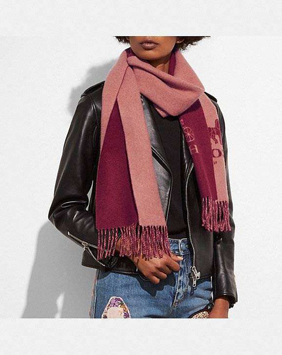 【女款】COACH 羊绒围巾 樱桃红柔粉色 18782-CHERRY-MELON