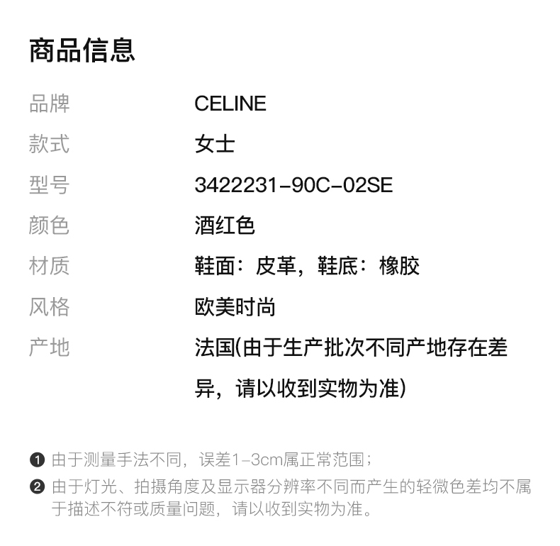 【女款】 CELINE女酒红色女士乐福鞋3422231-90C-02SE