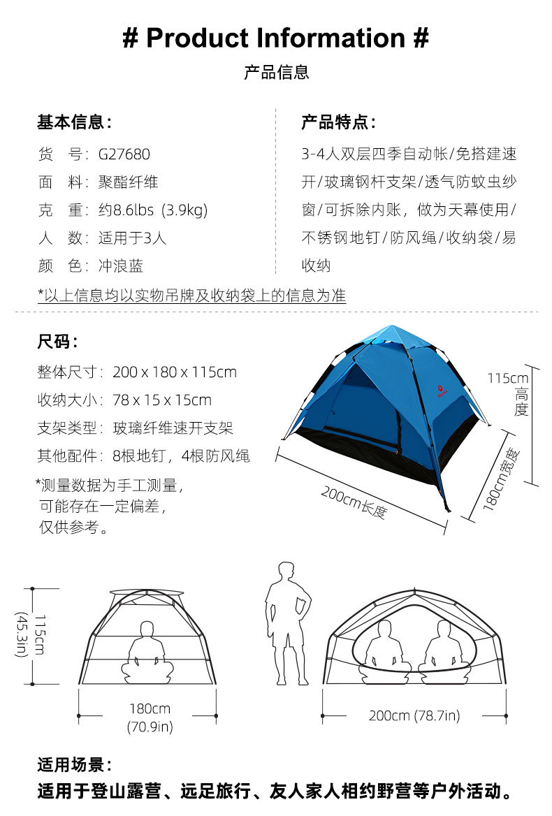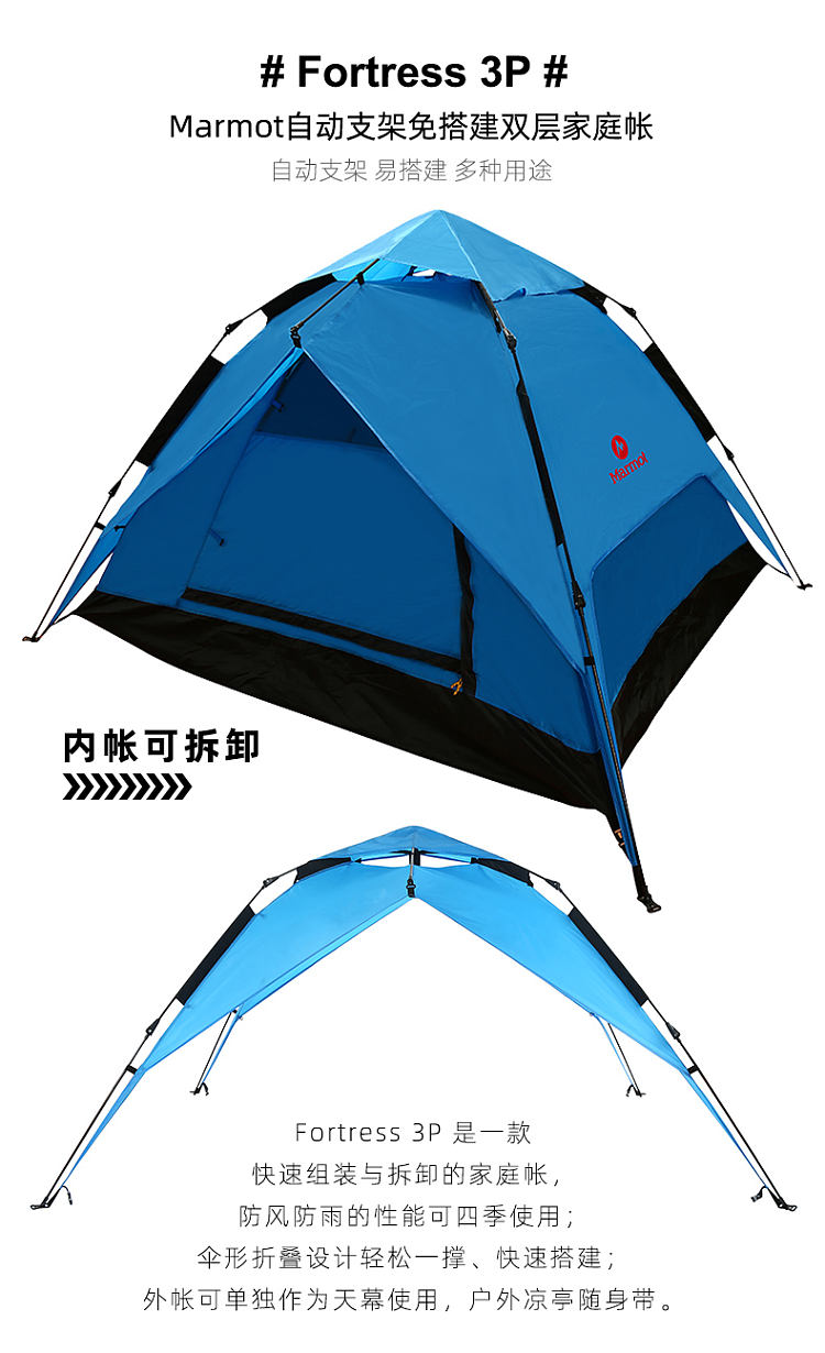 【男女通用款】MARMOT 帐篷 自动帐篷 27680 冲浪蓝