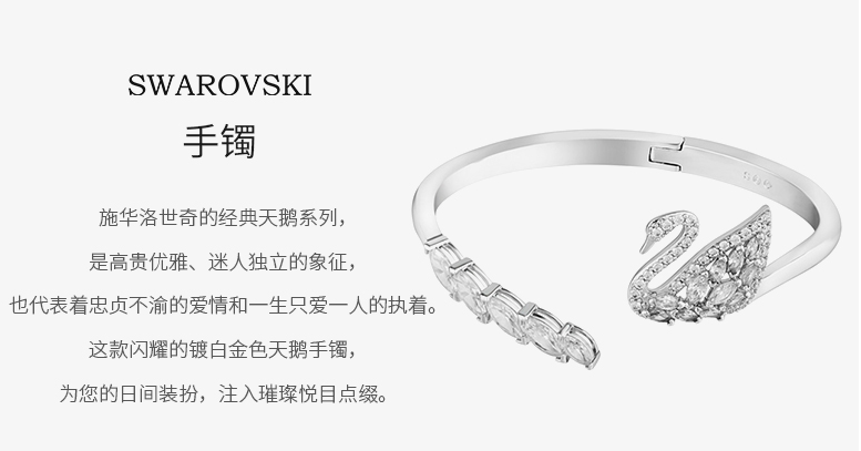 Swarovski 5231330 银色仿水晶精典浪漫天鹅手镯(M号)