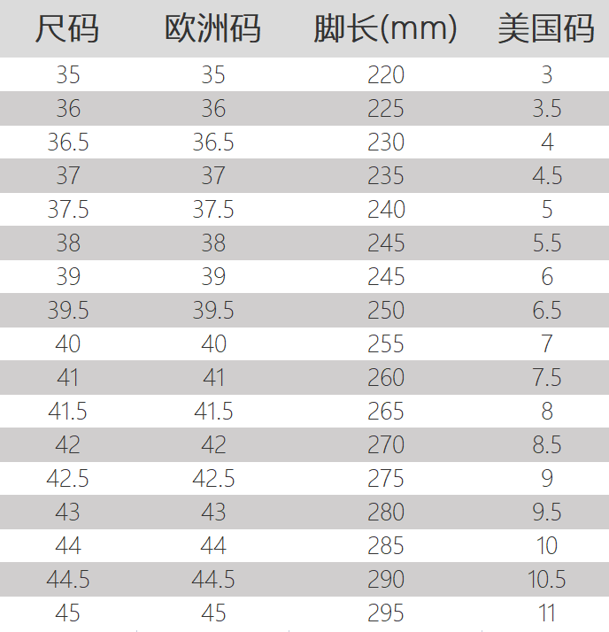 尺码信息