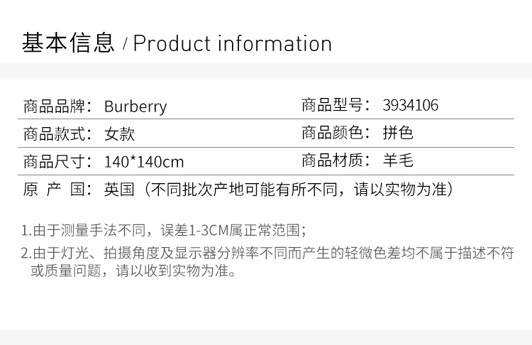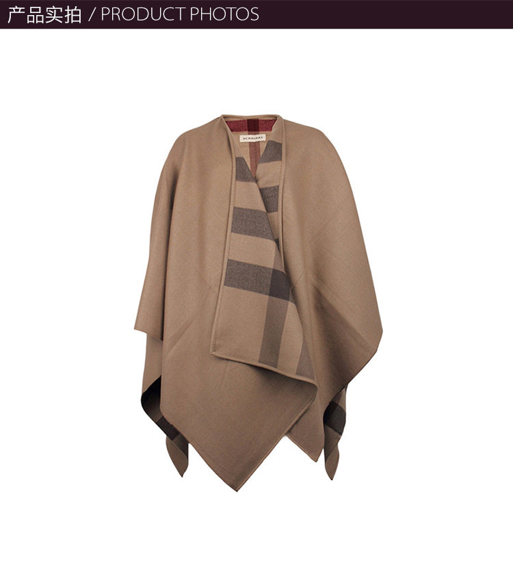 【女款】 Burberry博柏利女士羊毛拼色格纹披肩3934106