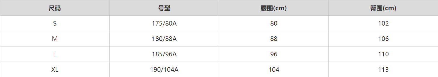 尺码信息