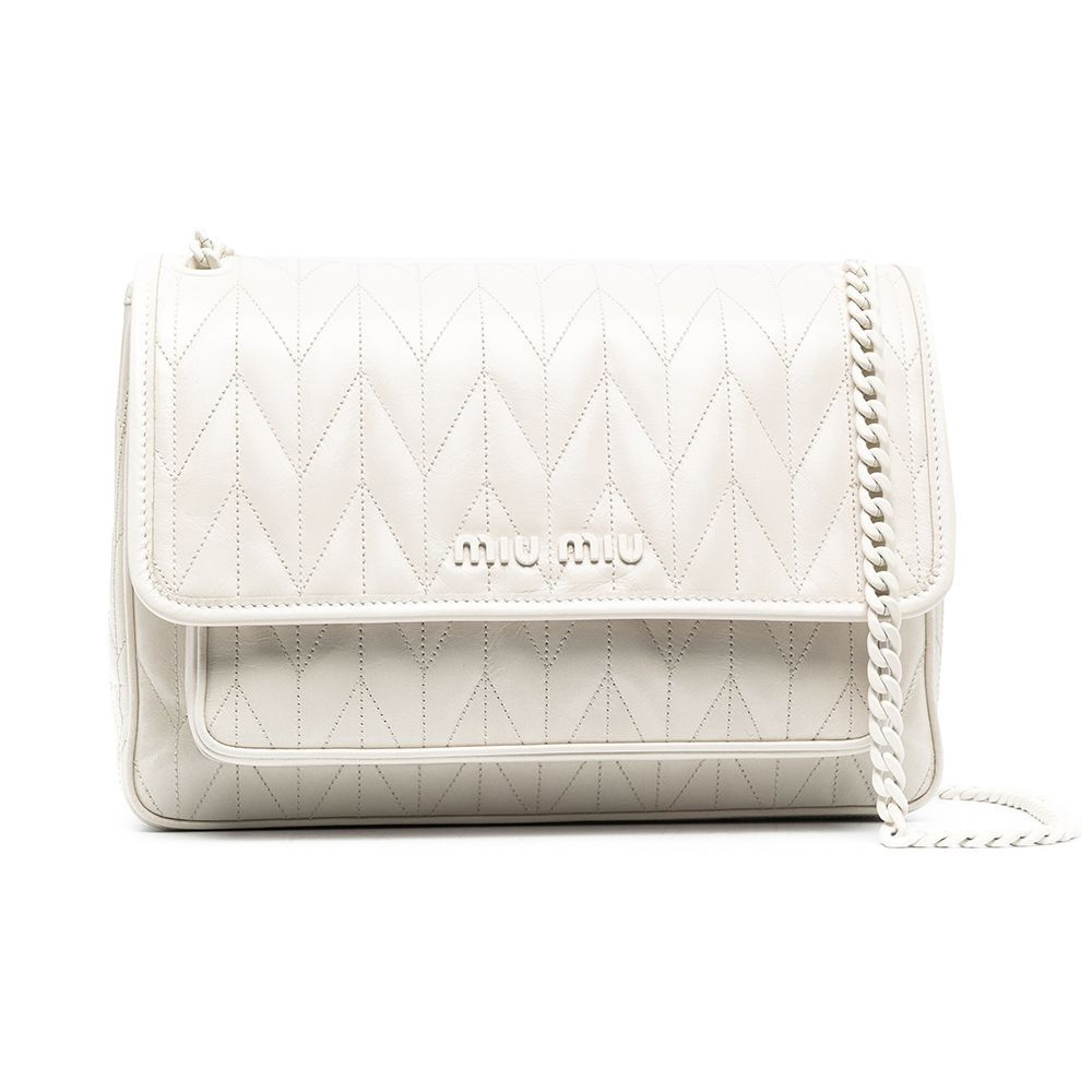 【女款】 MIUMIU女士白色牛皮绗缝菱格纹链条单肩包5BD160-2D6C-F0K74