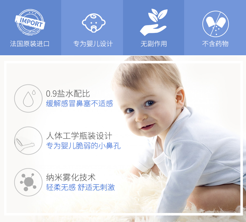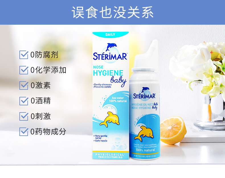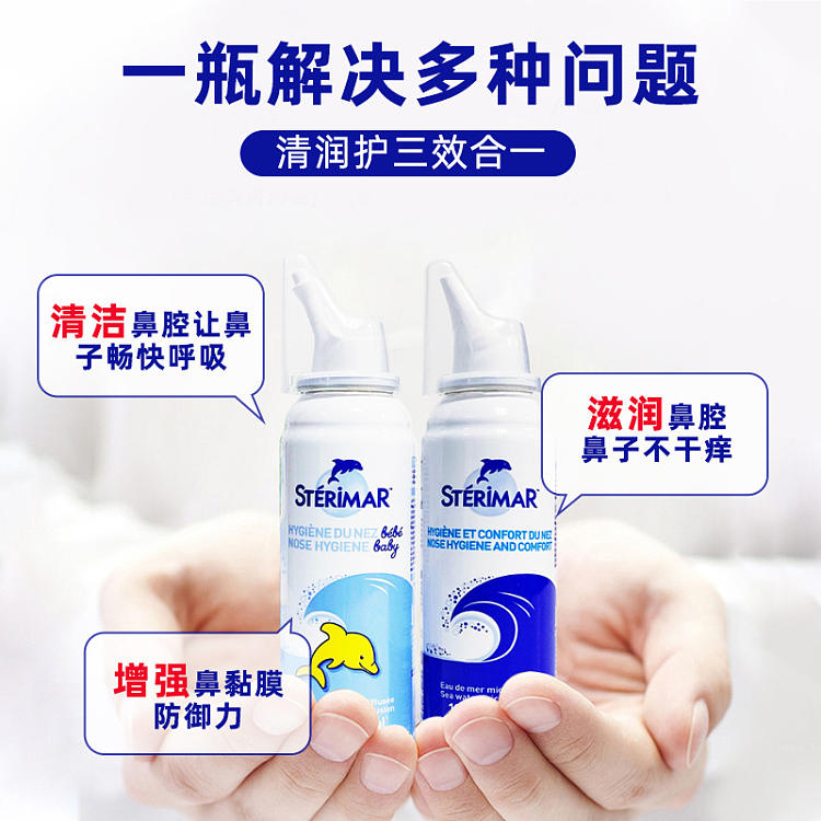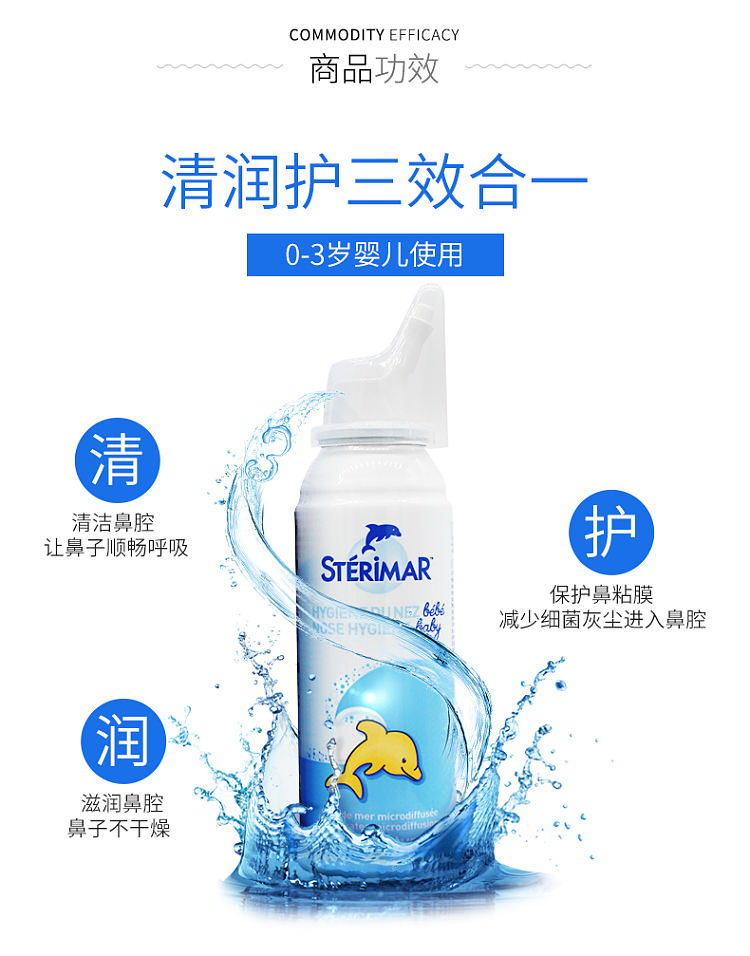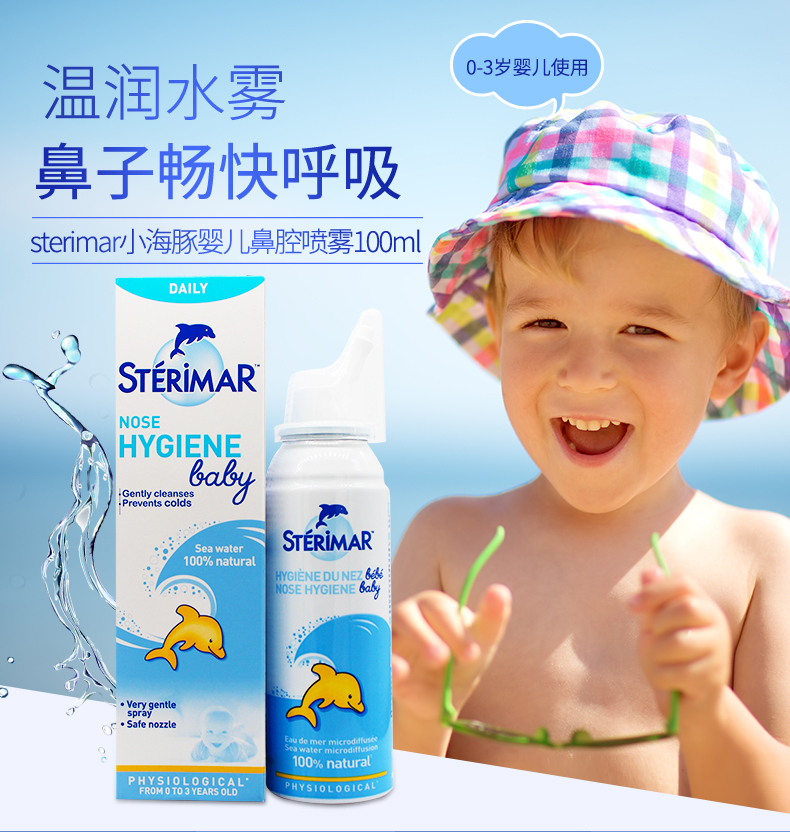 法国sterimar小海豚鼻喷婴儿生理海盐水洗鼻液新生儿童鼻腔喷雾剂100ml*2