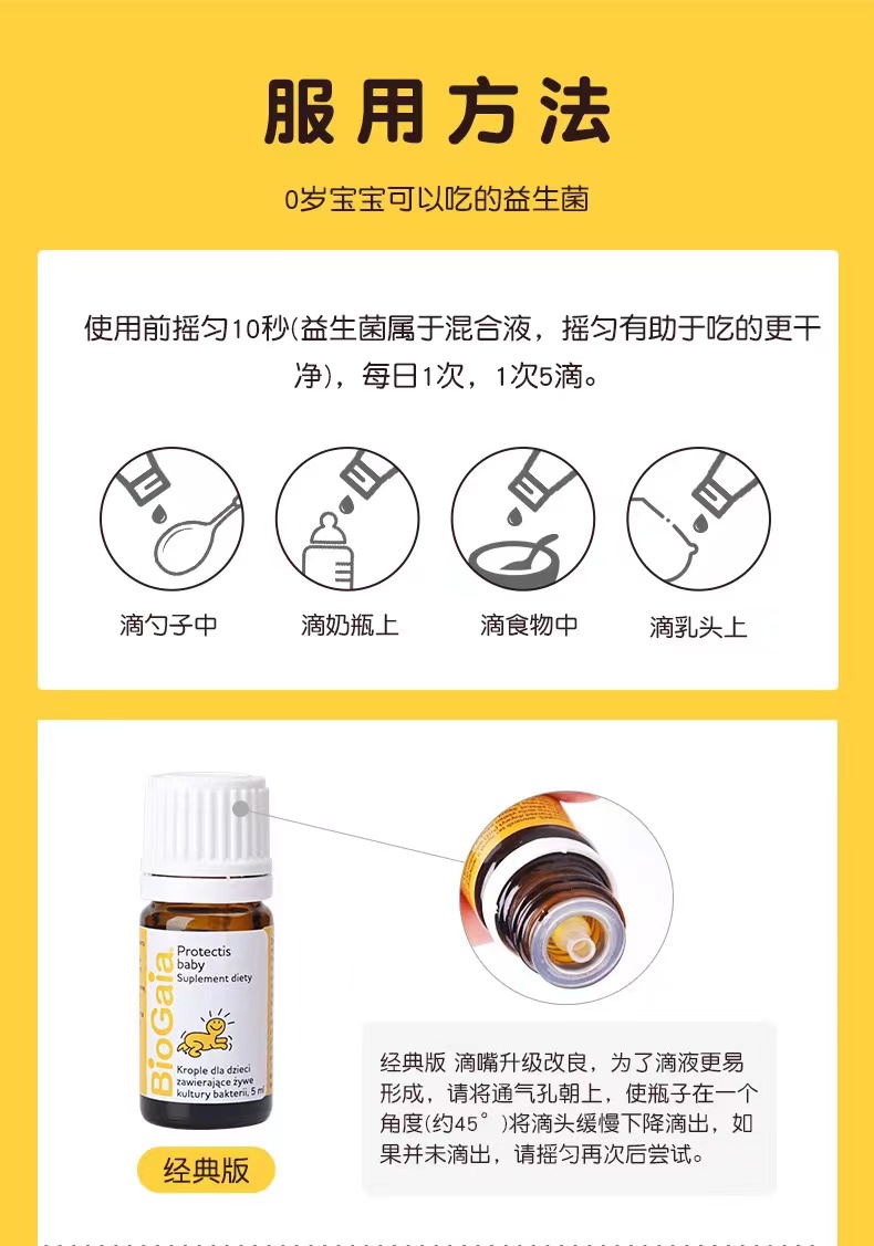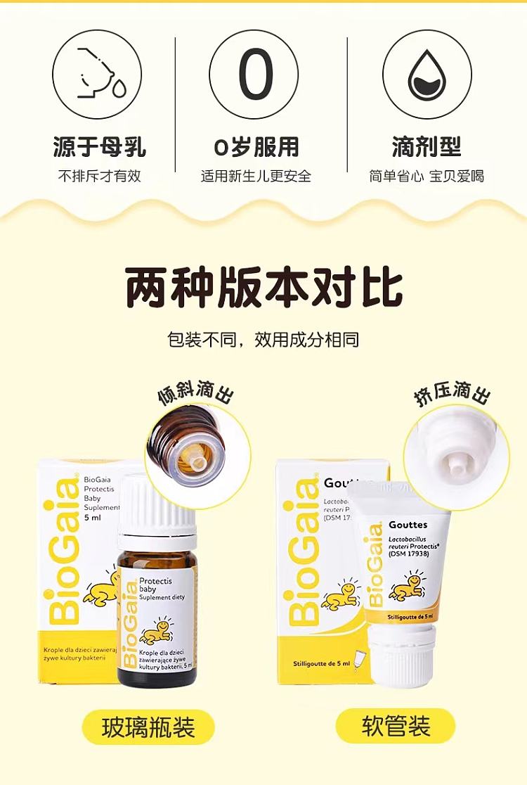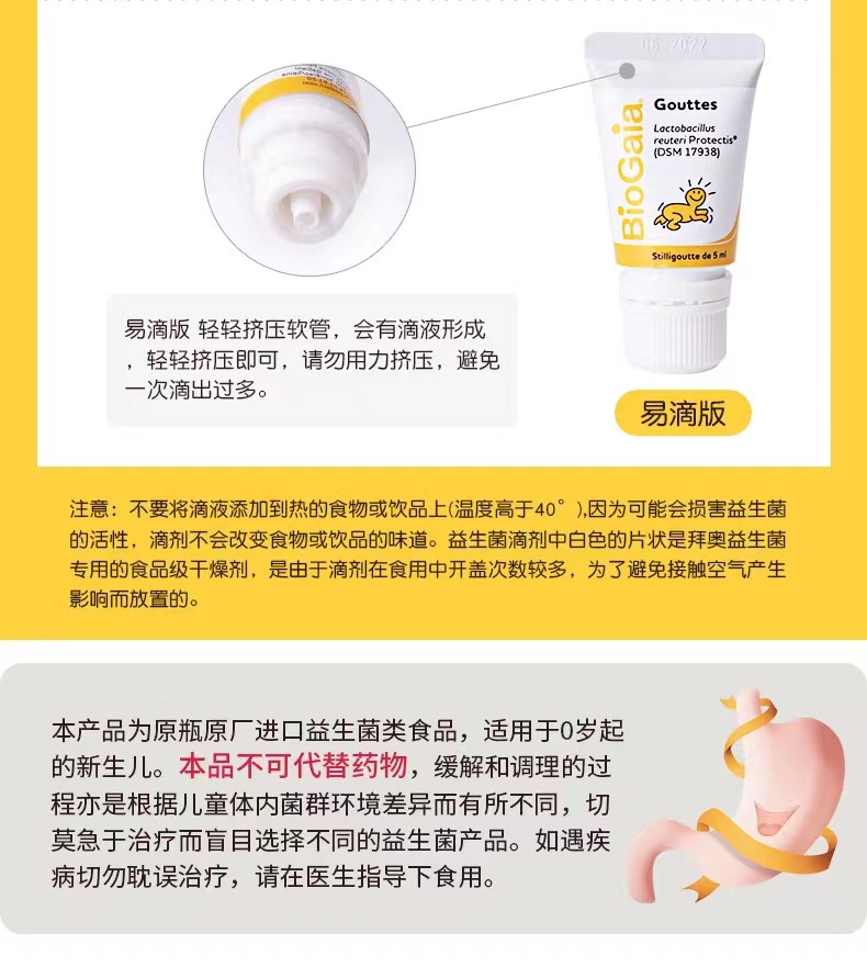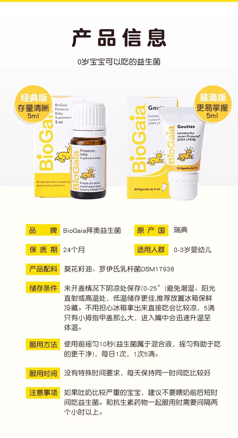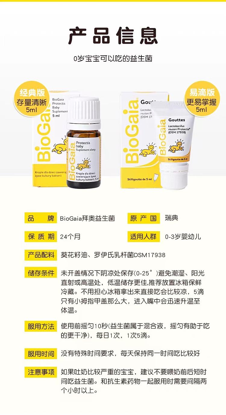 瑞典biogaia拜奥益生菌新生婴幼儿调理肠胃胀气罗伊氏乳杆菌5ml