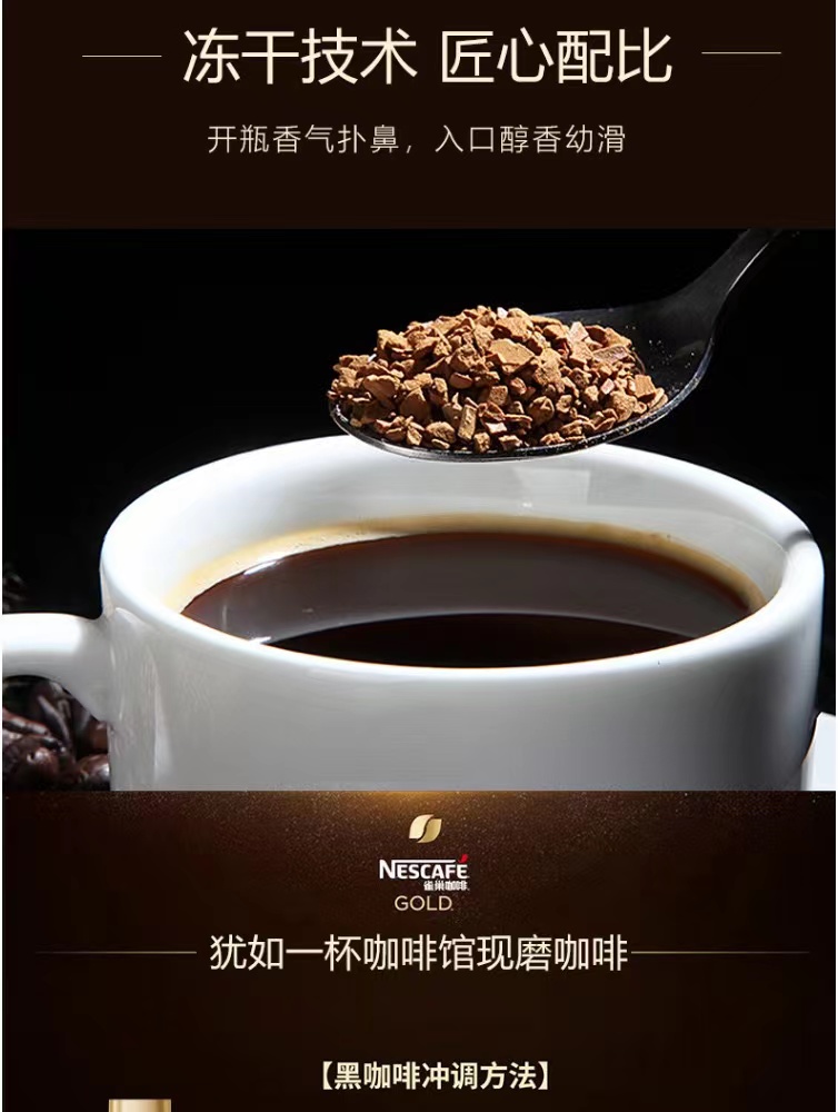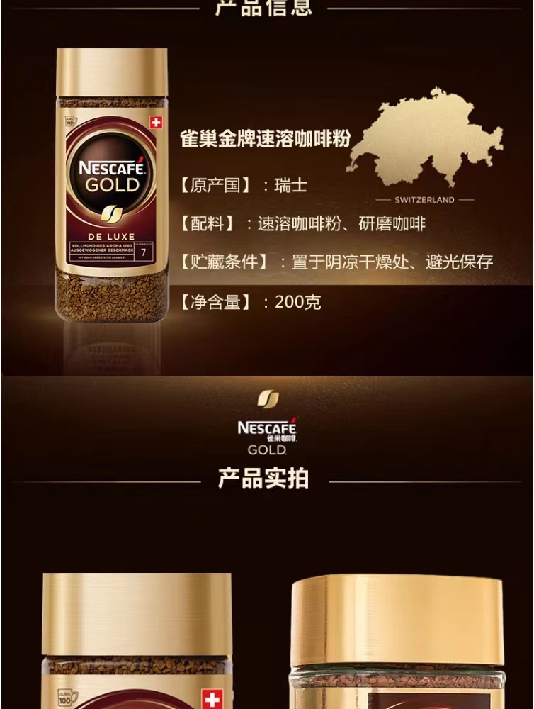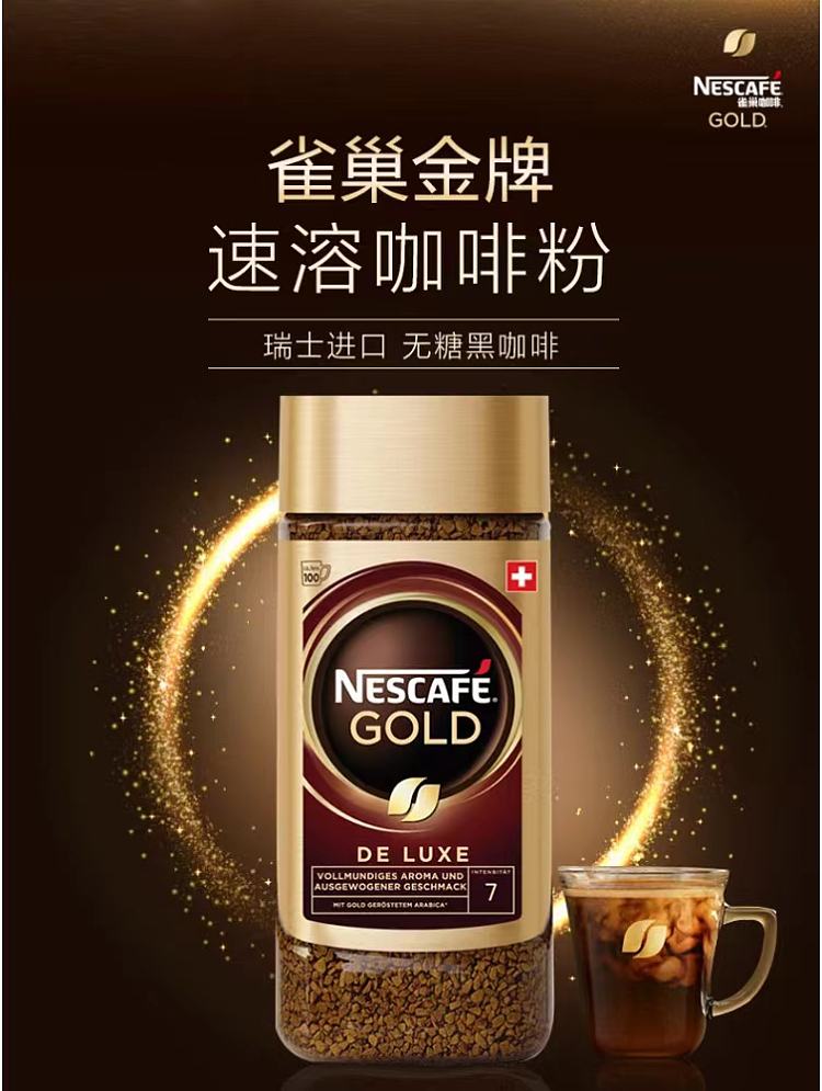 瑞士进口金牌速溶咖啡粉醇香办公提神纯黑原味美式咖啡罐装200g