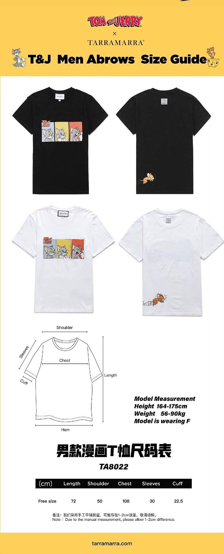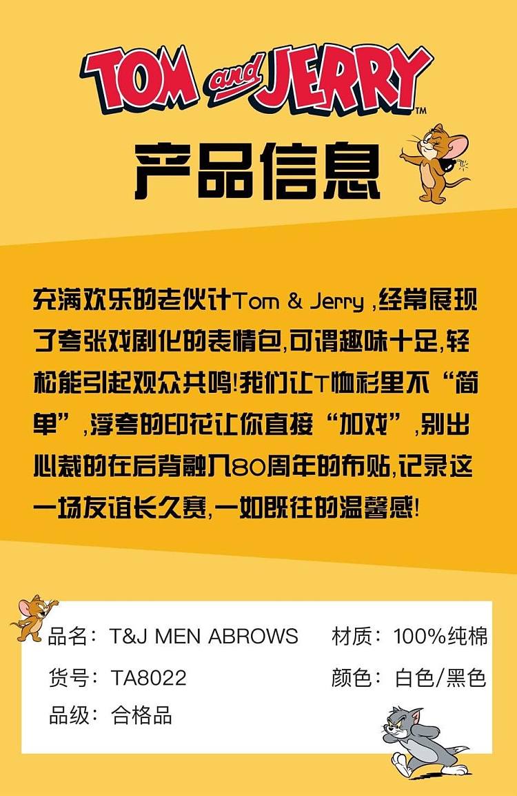 【男款】 【猫和老鼠联名】TARRAMARRA2020夏季新款短袖T恤女纯棉情侣宽松印花上衣男白色均码TA8022white-均码