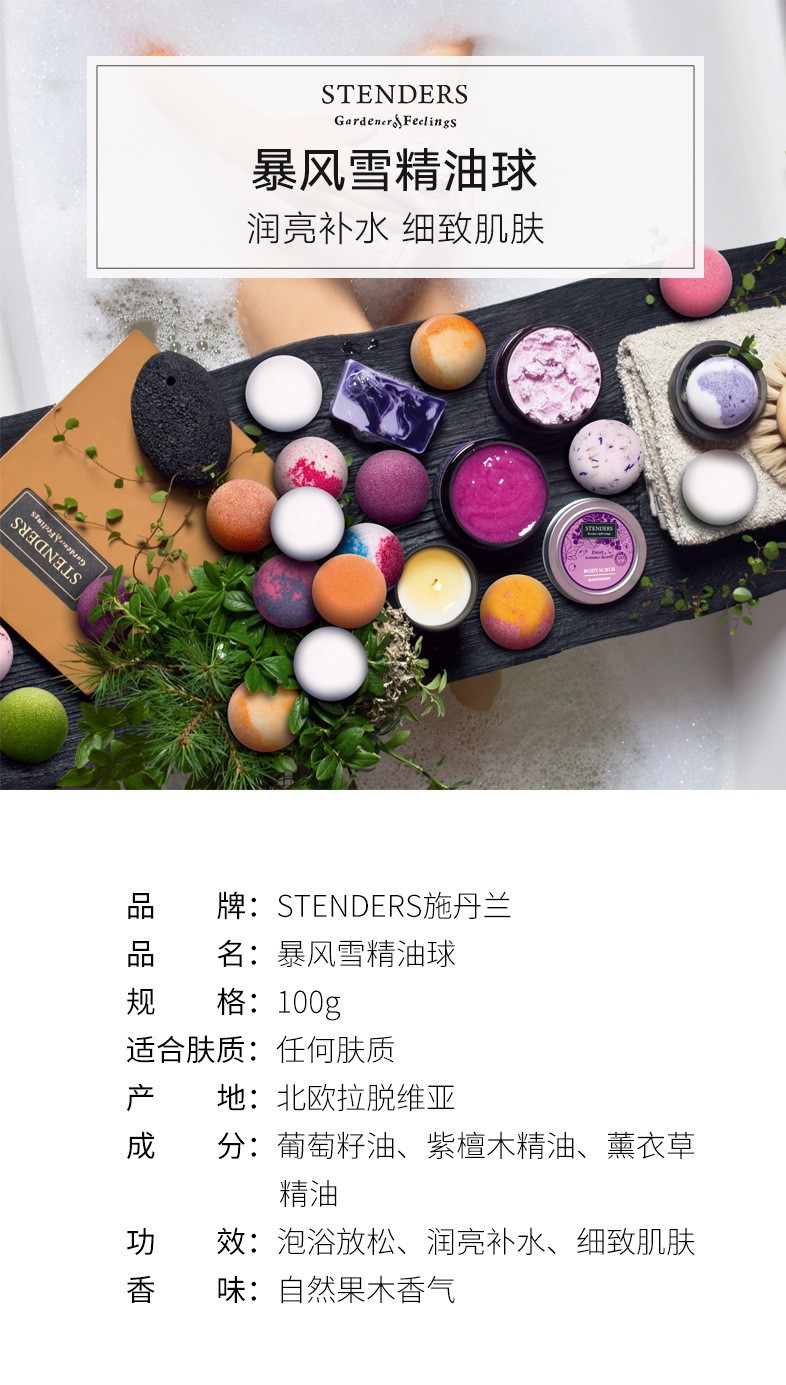 STENDERS施丹兰 暴风雪精油浴球泡泡沐浴泡澡光滑细腻100g