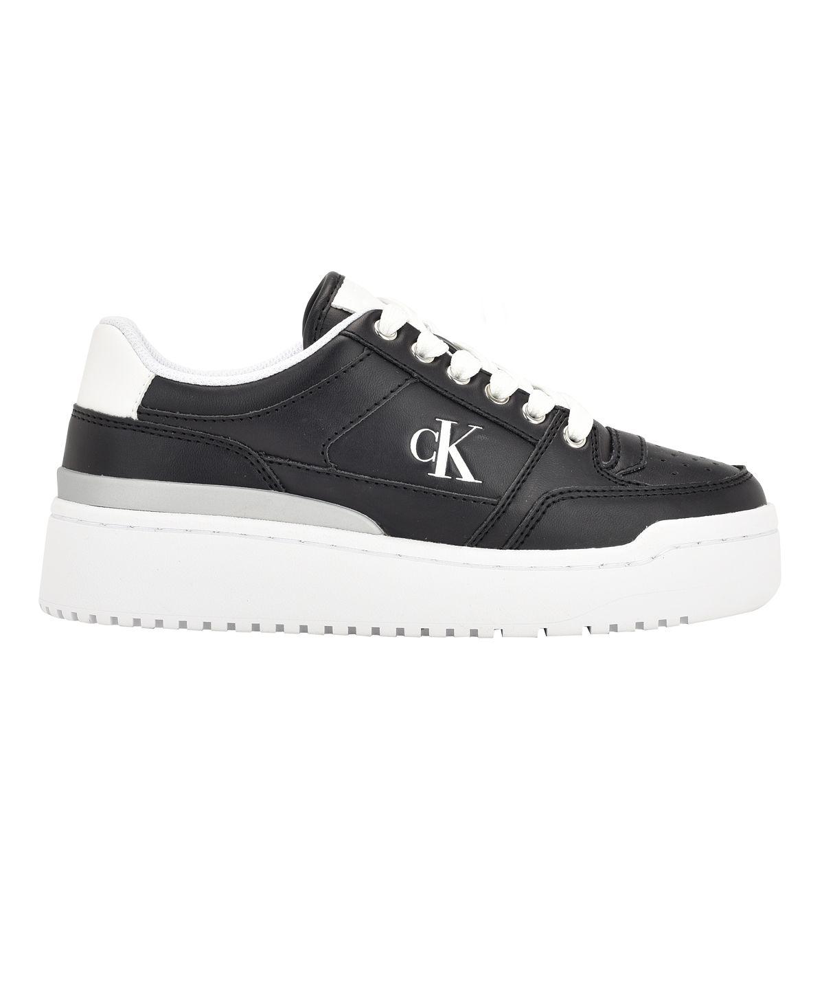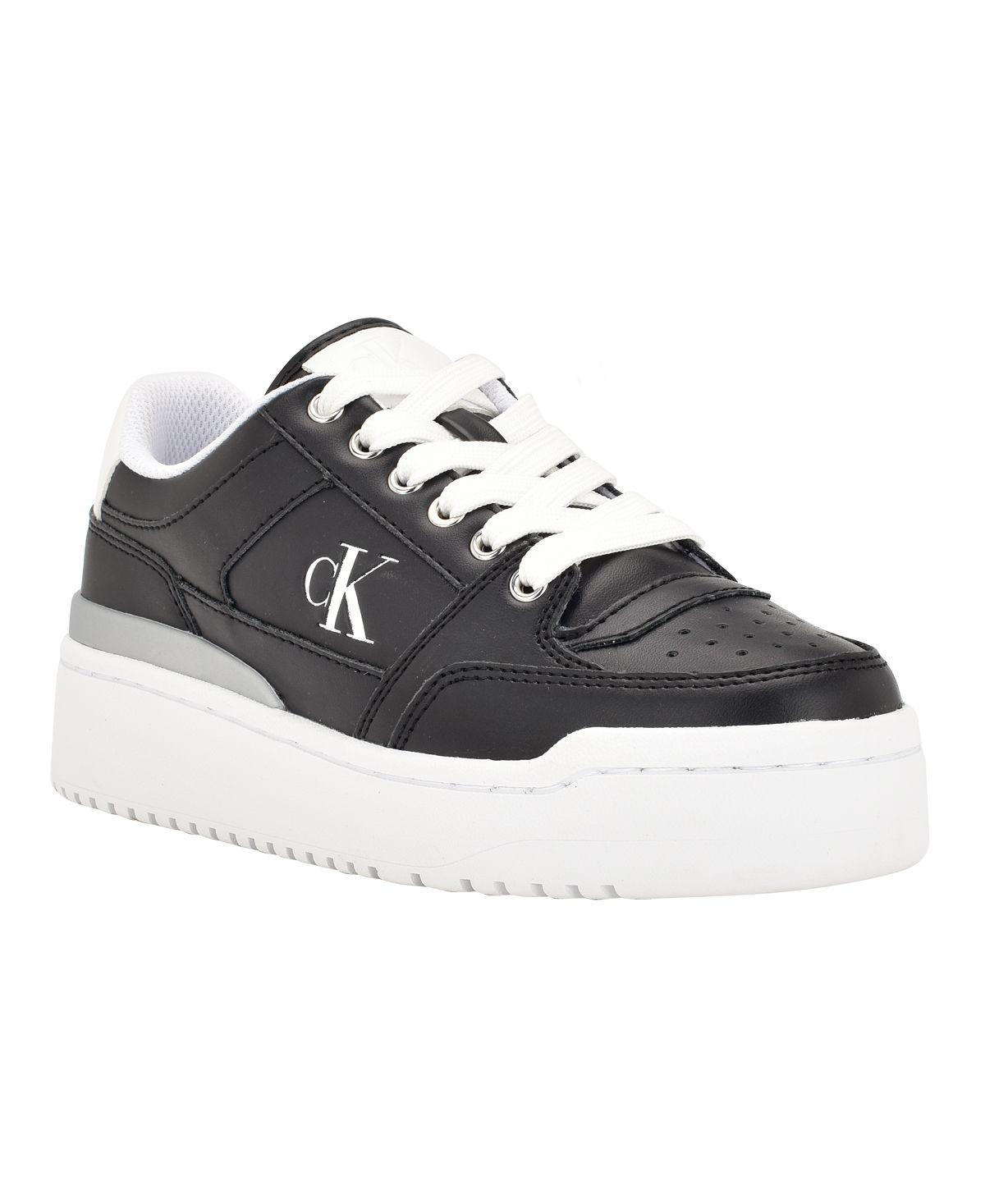 【标准版】Calvin Klein 女款 Alondra Casual Platform Lace-up 休闲鞋 15313831 Black - Faux Leather
