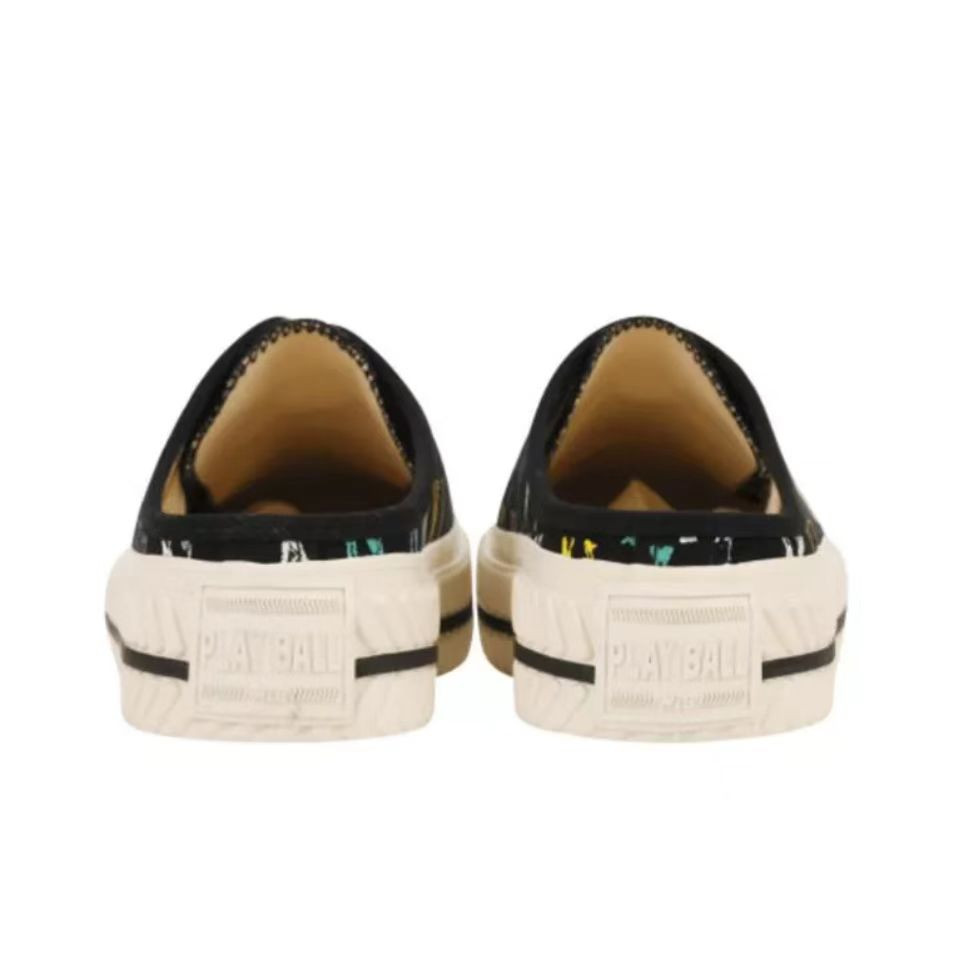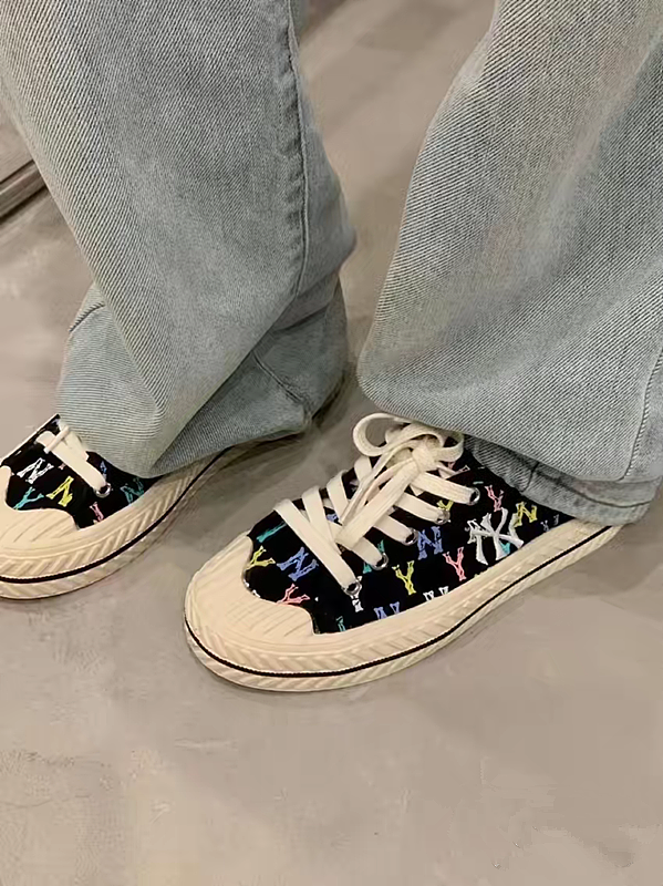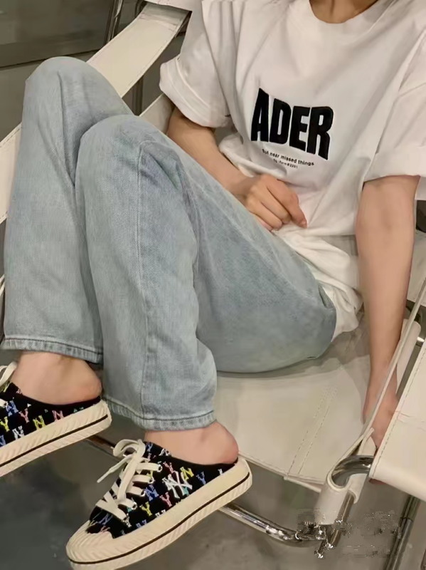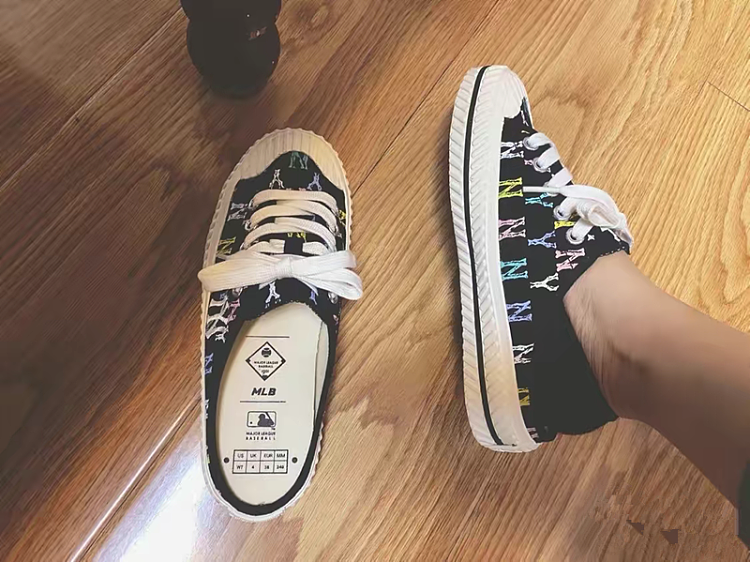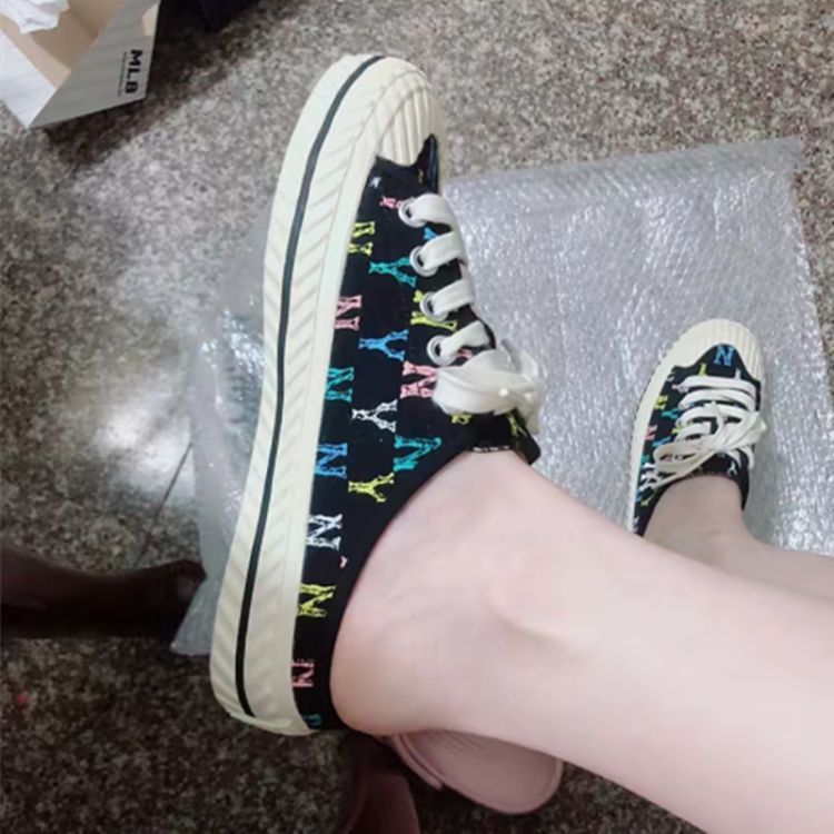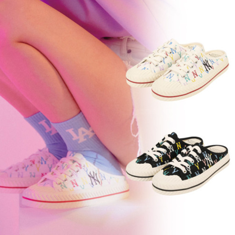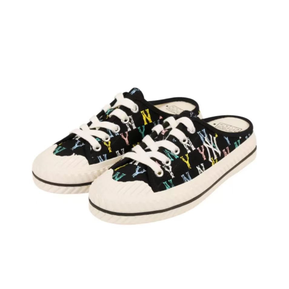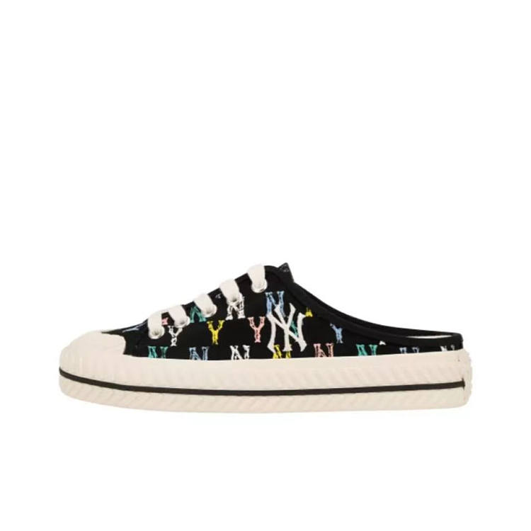 【男女同款】 MLB 网红NY帆布半拖板鞋 男女同款 黑色满印