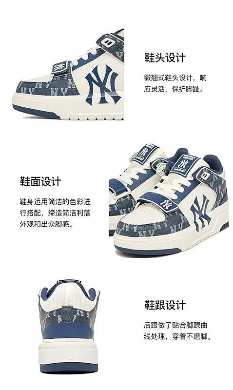【男女同款】 MLB 2023满标魔术贴学长中帮休闲鞋 男女同款 蓝色