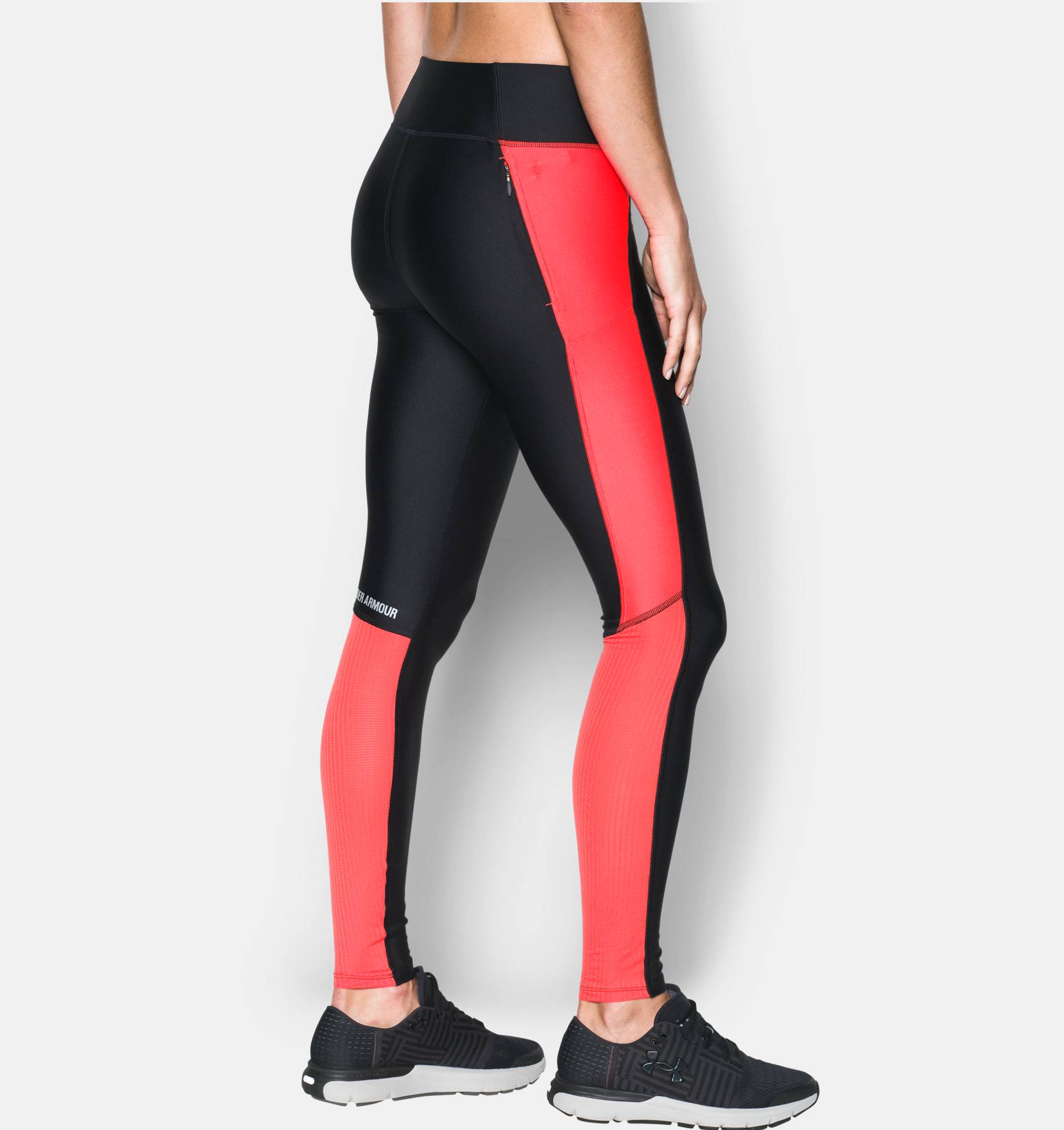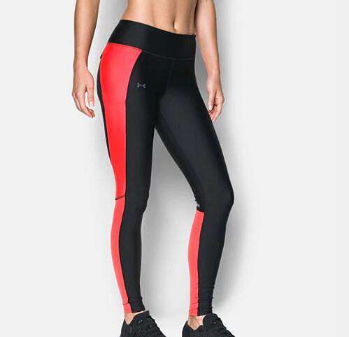 【今日上新】【女裤】Under Armour UA Fly-By 紧身裤 黑红拼色 1297935-Black-Marathon-Red