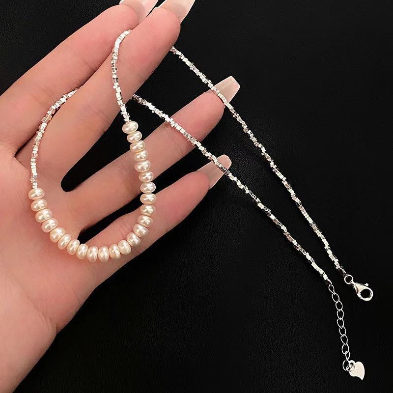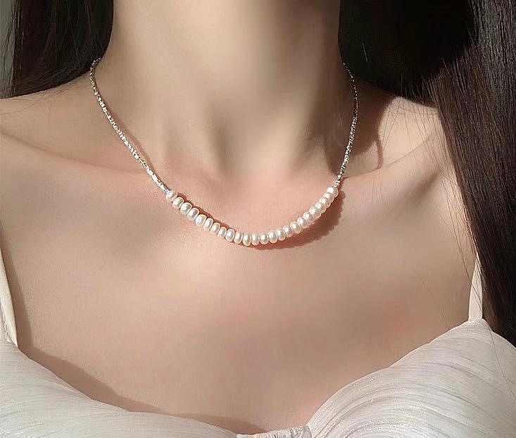 法式复古碎银子淡水珍珠项链