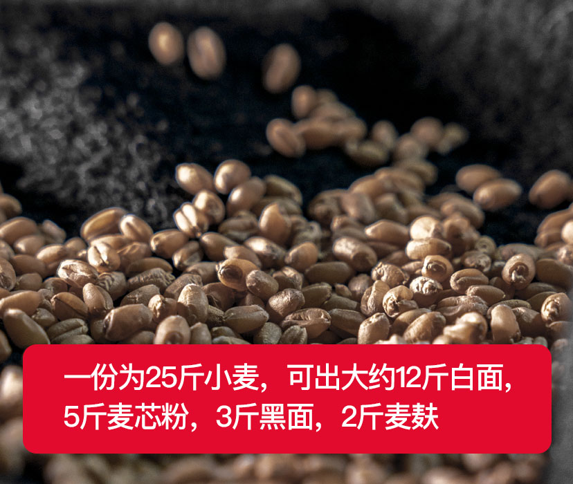 现磨面粉(不含麦麸)25斤小麦,免费代加工