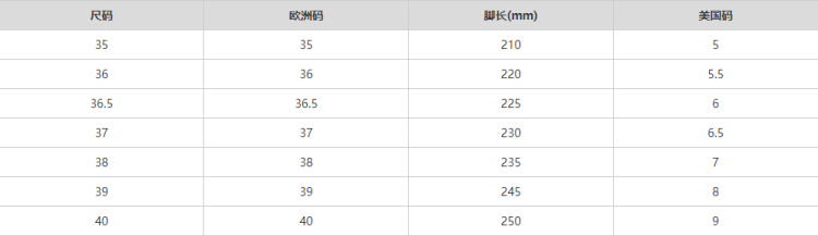 尺码 39 40 41 42 42.5 43 44