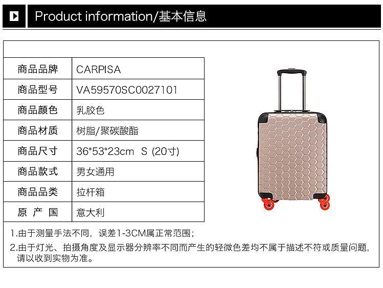 首页> CARPISA旅行箱> CARPISA 男女通用乳胶色旅行箱 VA59570SC0027101 20寸