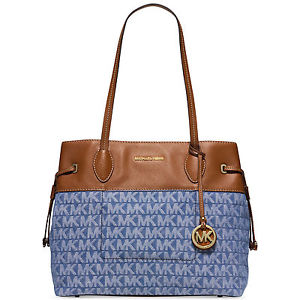 Michael Kors 牛仔色 Logo 玛丽娜大号抽绳托特包 30S6GMAT7V-405