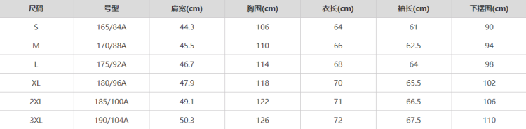 尺码 S M L XL XXL XXXL