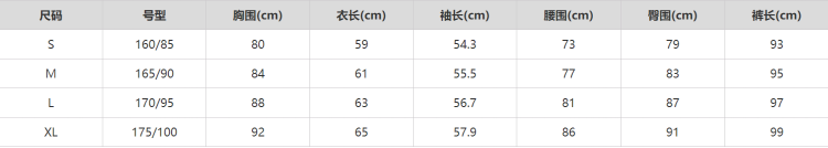 尺码 S M L XL