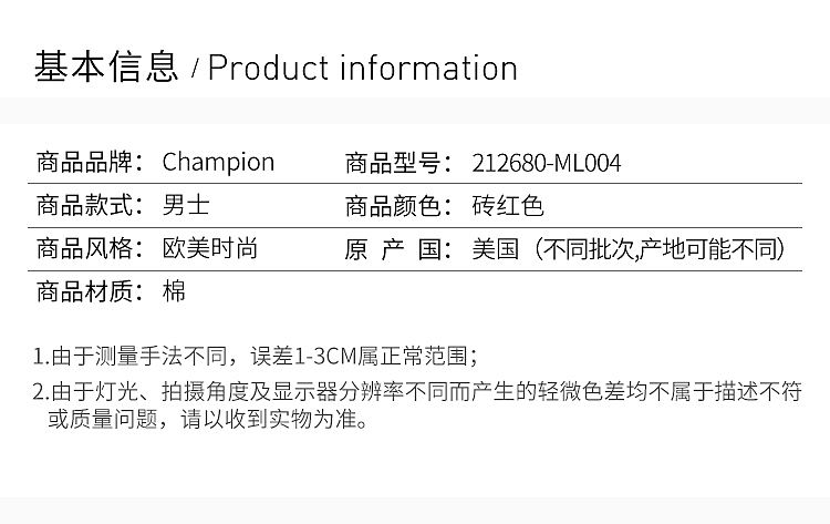 首页> Champion服饰> 【男款】 Champion红色棉男士卫衣212680-ML004
