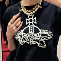 西太后新字母款土星星球印花圆领短袖T恤 男女同款 黑色粉字