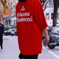 西太后新字母款土星星球印花圆领短袖T恤 男女同款 红色