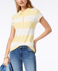 【今日上新】Tommy Hilfiger 女士 标准款 条纹 Pique Polo 衫 黄白条纹 5791688-Sunshine