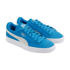 【男款】Puma Classic + Mens Blue Suede Lace Up 运动鞋 36324205-Blue-Danube-Puma-White-M