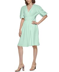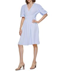 【女款】Petite Denim Puff-Sleeve Sheath 连衣裙 13863556 Blue