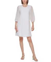 【女款】Calvin Klen Petite Clip-Dot Shift 连衣裙 13863564 White