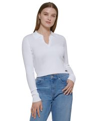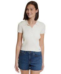 【女款】Ribbed Cap-Sleeve Polo衫 13836803 Porcelain