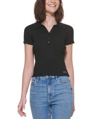 【女款】Ribbed Cap-Sleeve Polo衫 13836803 Black