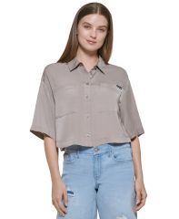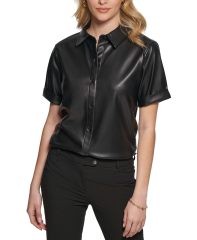 【女款】X-Fit Short Sleeve Faux Leather Button Down 衬衫 13716557 Black
