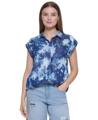 【女款】Printed Cap-Sleeve Chambray 衬衫 13668612 Medium Wash