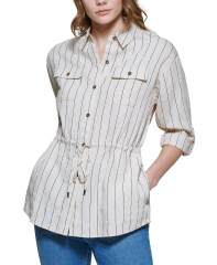【女款】Striped Tie Waist Button Down 衬衫 13800189 Beige/Black