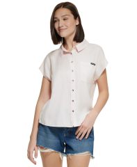 【女款】Long Sleeve Logo Print Button Down 衬衫 13942514 White/Rose