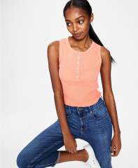 【女款】Ribbed 亨利衫 Cropped 上衣 13668605 Coral Pop