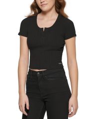 【女款】Ribbed 亨利衫 Cropped 上衣 13668605 Black