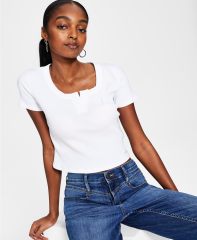 【女款】Ribbed 亨利衫 Cropped 上衣 13668605 White