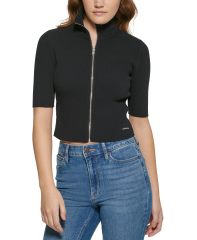 【女款】Ballet-Sleeve Mock-Neck Full-Zip Cropped 上衣 13668607 Black