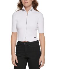 【女款】Ballet-Sleeve Mock-Neck Full-Zip Cropped 上衣 13668607 White